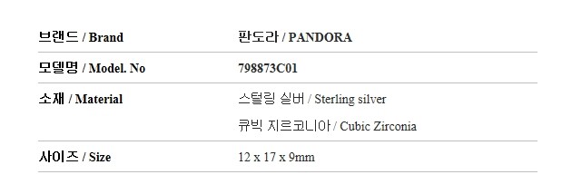 [명품] 판도라 798873C01 스파클링 펫 발바닥 & 하트 펜던트 겸 댕글 실버 참