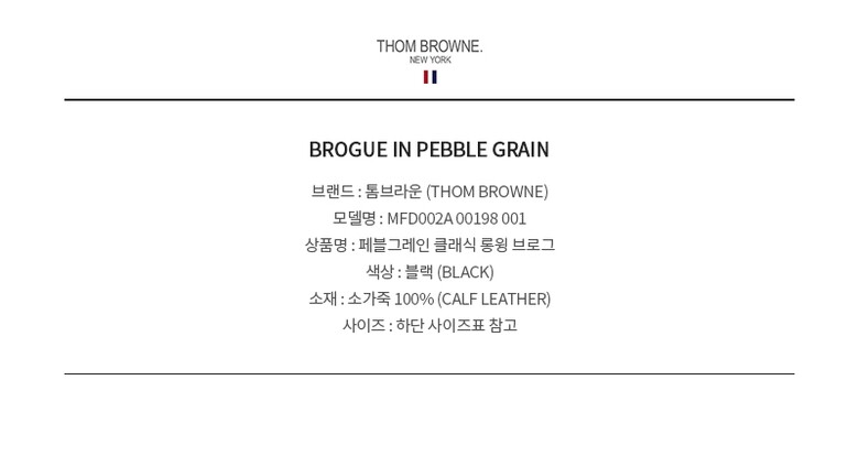 - #리본즈코리아 #MFD002A00198001 #[명품] #톰브라운 #페블 #그레인 #클래식 #롱 #윙 #솔 #브로그 #블랙 #MFD002A #00198 #001 #남성 #슈즈 #로퍼/드라이빙 #로퍼