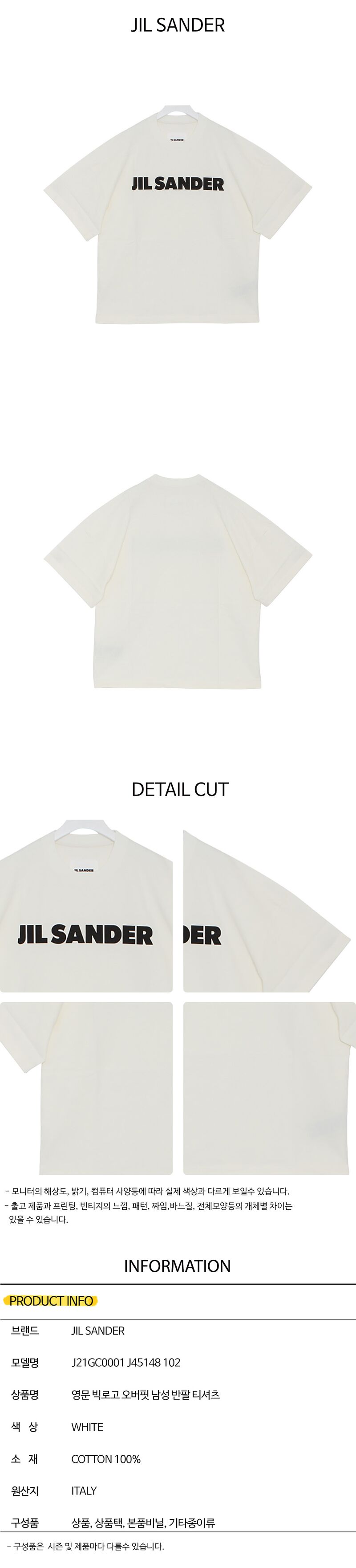 - #리본즈코리아 #J21GC0001J45148102 #[명품] #질샌더 #25SS #빅로고 #오버핏 #남성 #반팔 #J21GC0001 #J45148 #102 #의류 #상의 #티셔츠