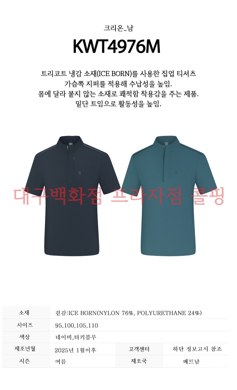 KWT4976M 002_크리온 남성 여름 트리코드 집업티