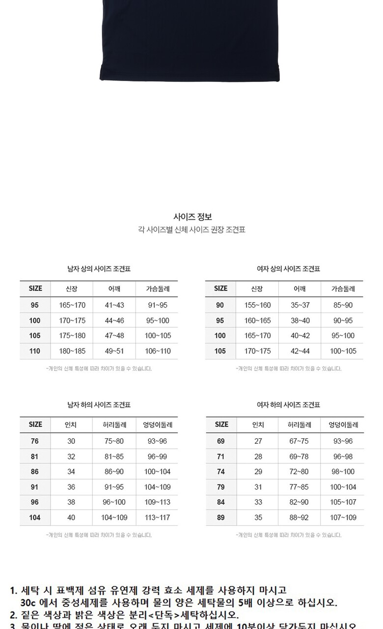 세탁방법 및 취급시 주의사항 : 단독세탁,세탁기 및 표백성세제 사용금지