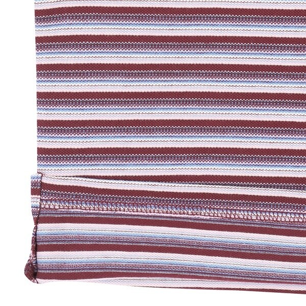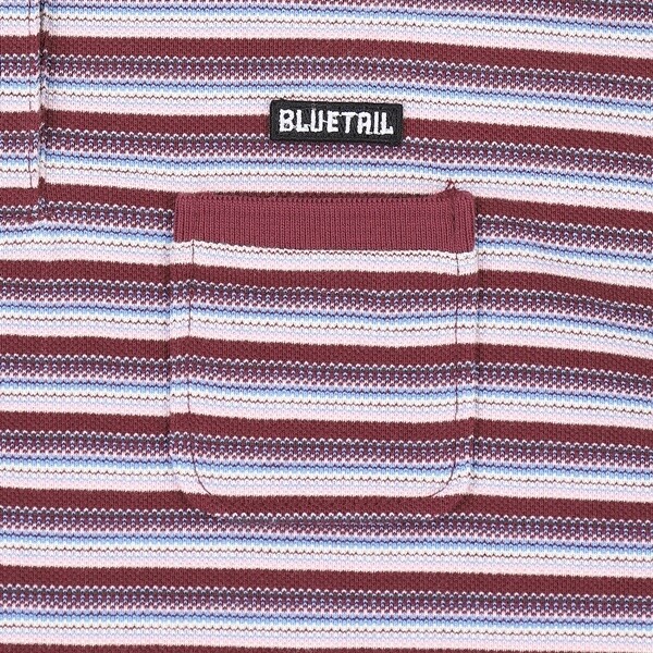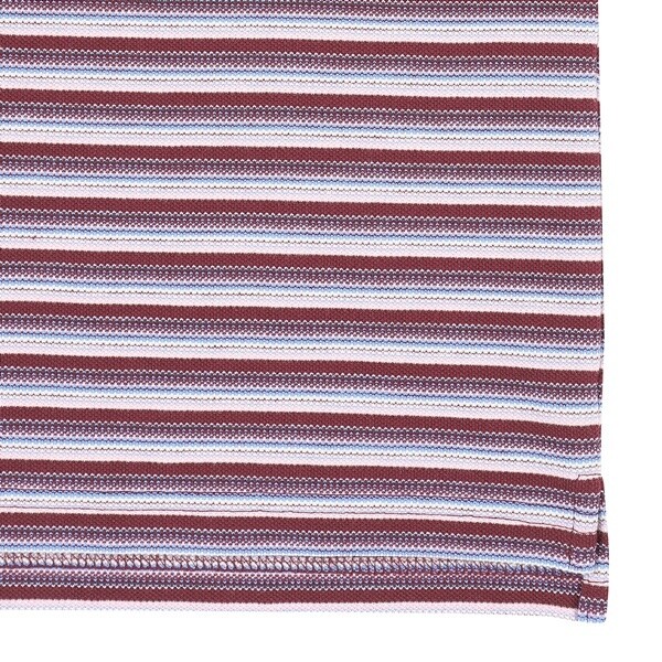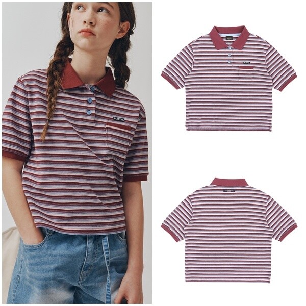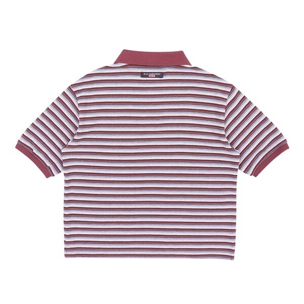 컬러 믹스와 피케 조직이 빈티지한 느낌을 주는 와인 스트라이프 카라 티셔츠입니다.