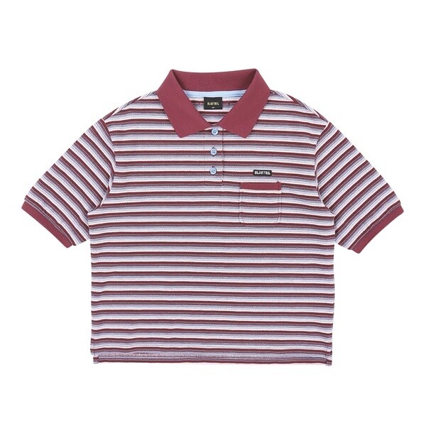 AZB2TS05WN_스트라이프 카라 와인 크롭 반팔티셔츠