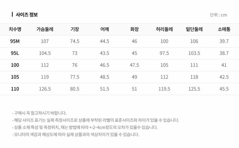 | 1. 제품 소재 (섬유의 조성 또는 혼용률을 백분율로 표시, 기능성인 경우 성적서 또는 허가서) | 상품상세참조 |