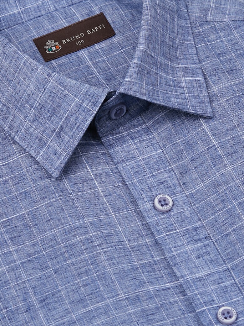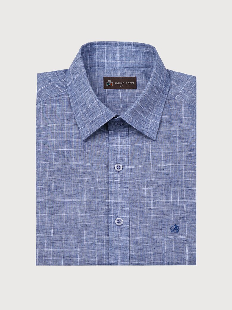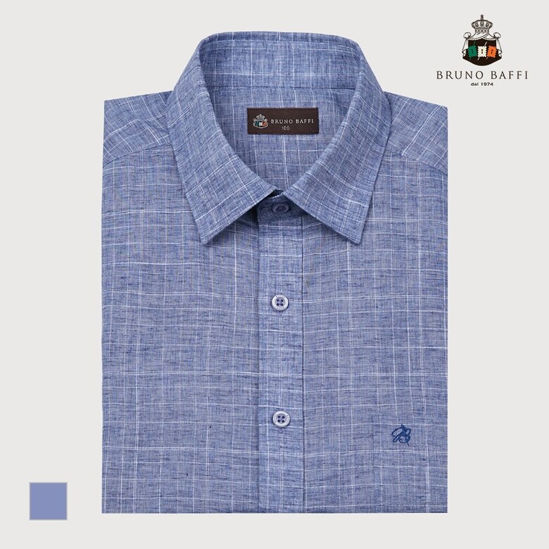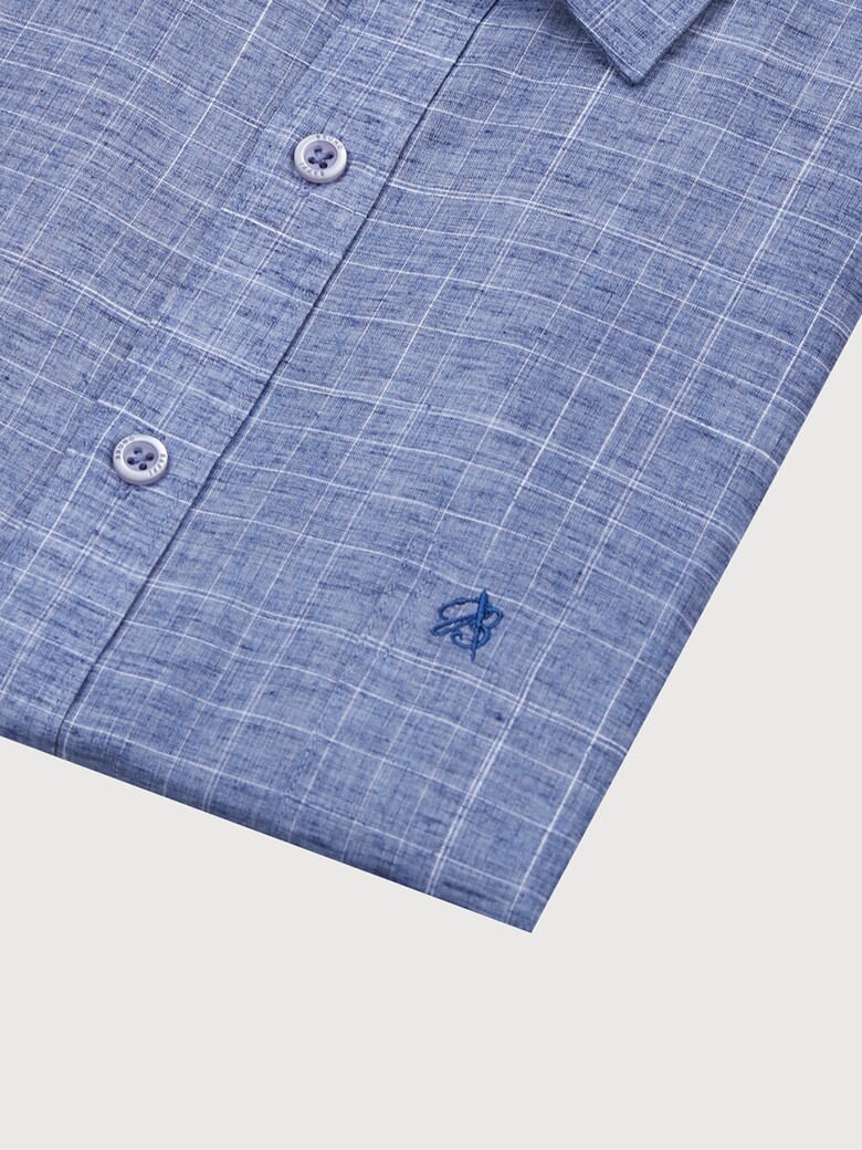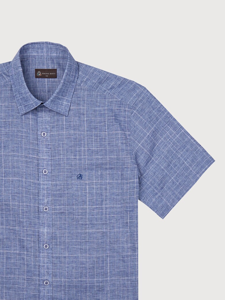 시원해보이는 그레이쉬블루 컬러에 린넨 소재 클래식 일반핏 셔츠남방입니다.