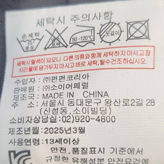 | 1. 제품 소재 (섬유의 조성 또는 혼용률을 백분율로 표시, 기능성인 경우 성적서 또는 허가서) | 상품상세참조 |
