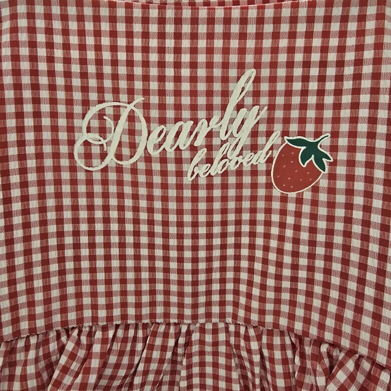 레드 딸기 깅엄 원피스