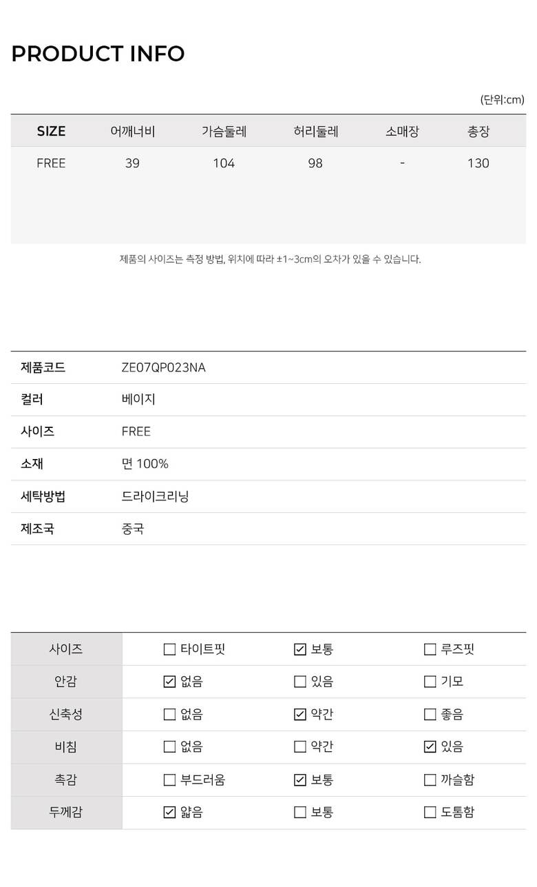| 1. 제품 소재 (섬유의 조성 또는 혼용률을 백분율로 표시, 기능성인 경우 성적서 또는 허가서) | 면 100% |