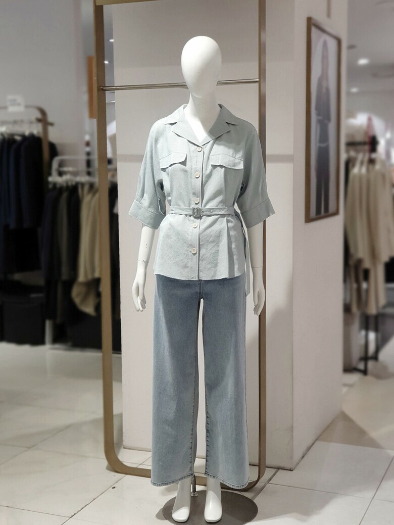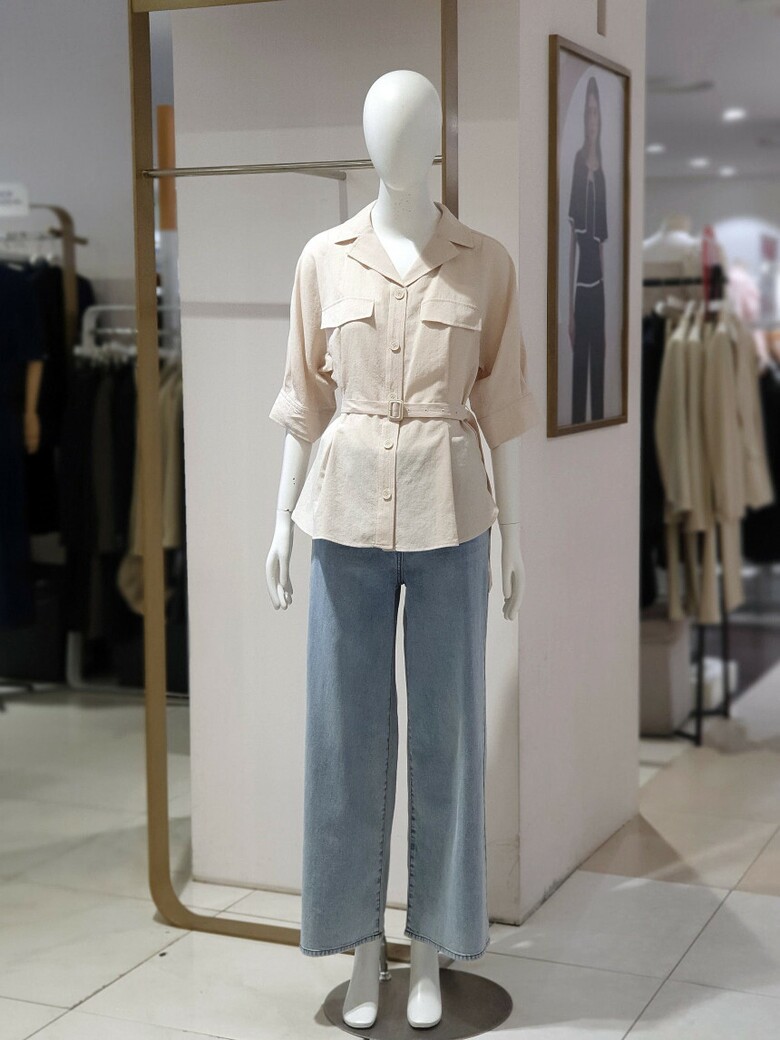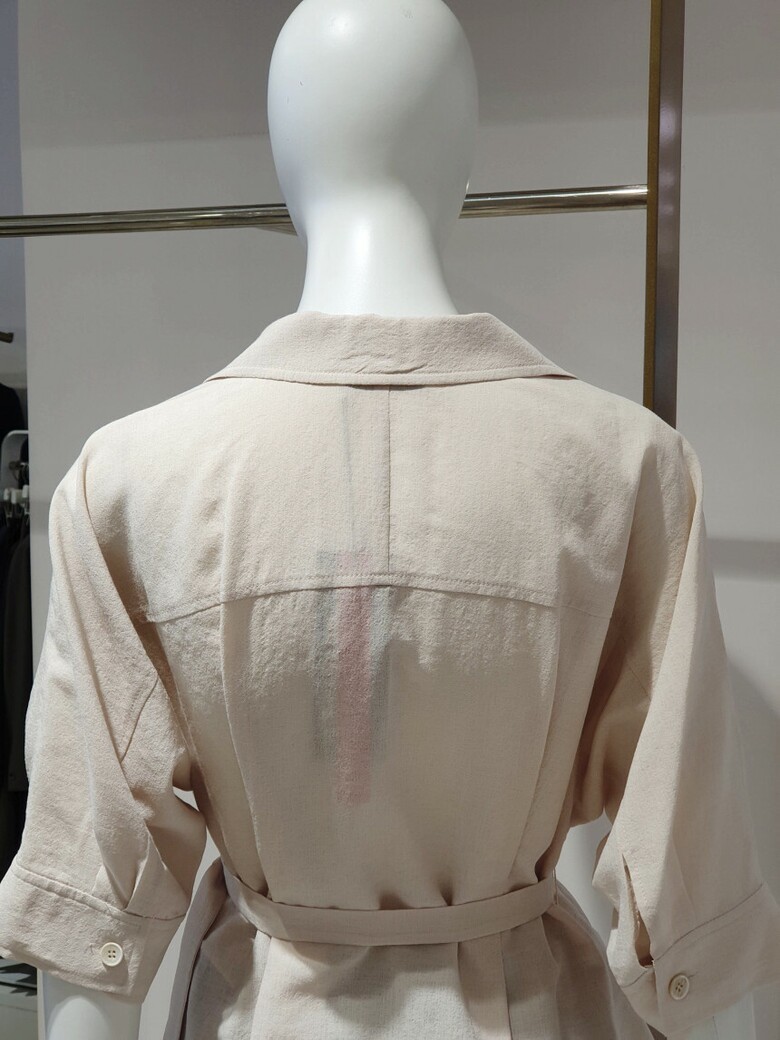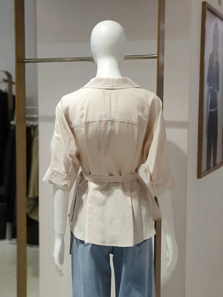 플랩 포켓 장식과 벨트 구성으로 포인트 연출이