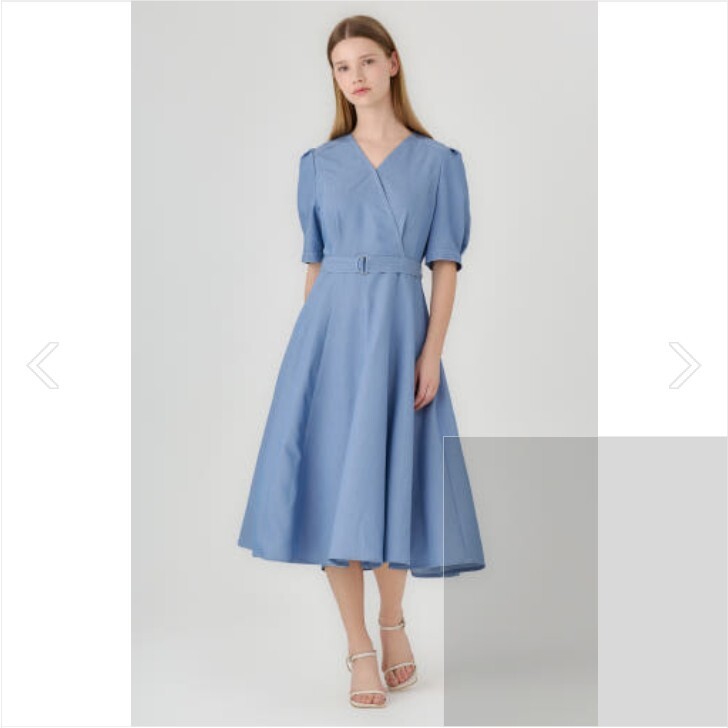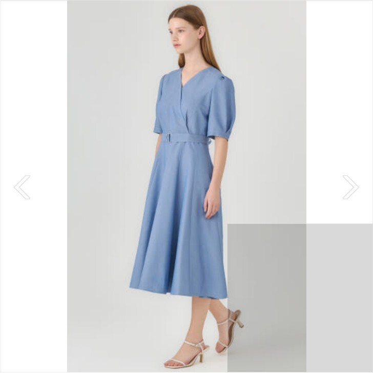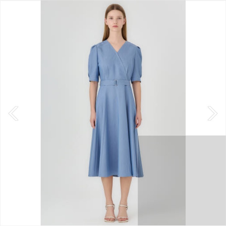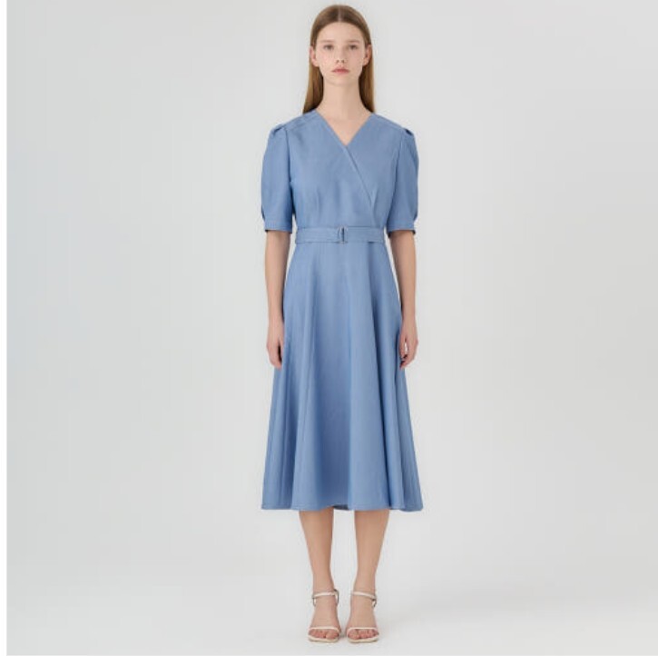 브이넥 디자인과 퍼프 소매로 페미닌한 여름 원피스룩을 완성해보세요.