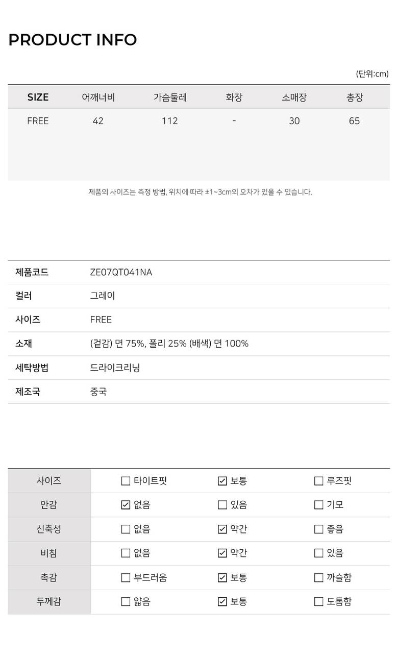 | 1. 제품 소재 (섬유의 조성 또는 혼용률을 백분율로 표시, 기능성인 경우 성적서 또는 허가서) | (겉감) 면 75%, 폴리 25% (배색) 면 100% |