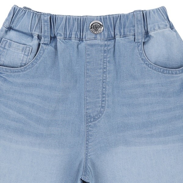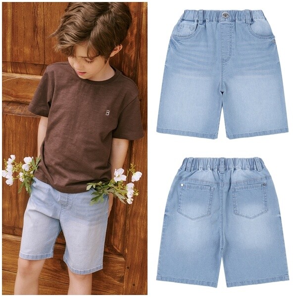 여름에 어울리는 밝고 얇은 소재감이 돋보이는 데님 반바지입니다.