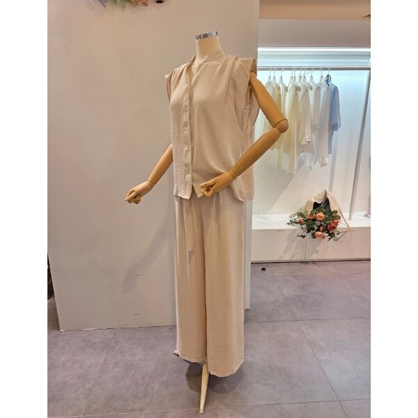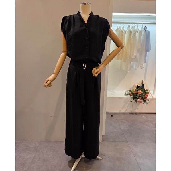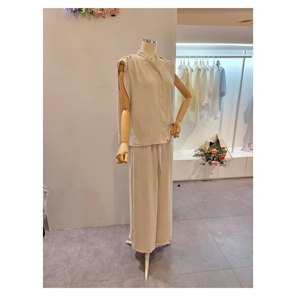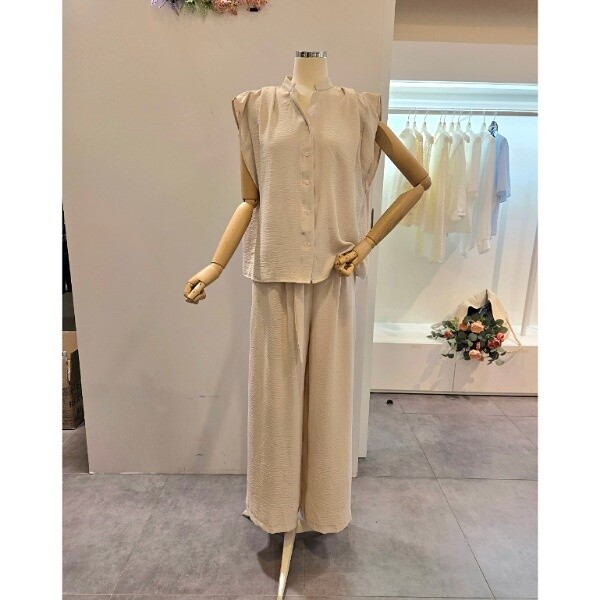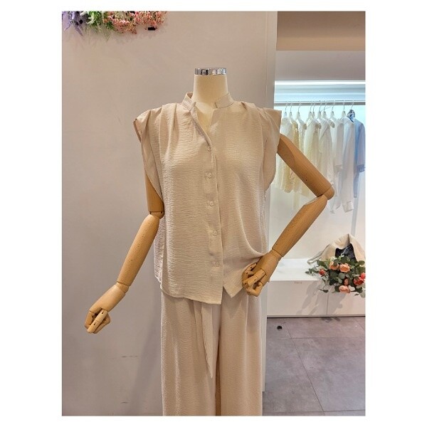 CP5WSU05_핀턱 카라 블라우스 팬츠 세트