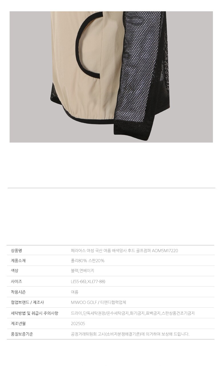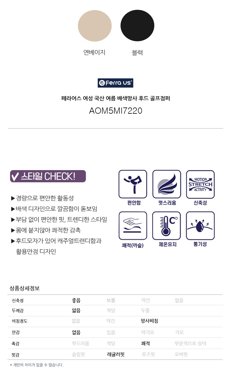 골피아 여성 국산 여름 배색망사 후드 골프점퍼 AOM5MI7220