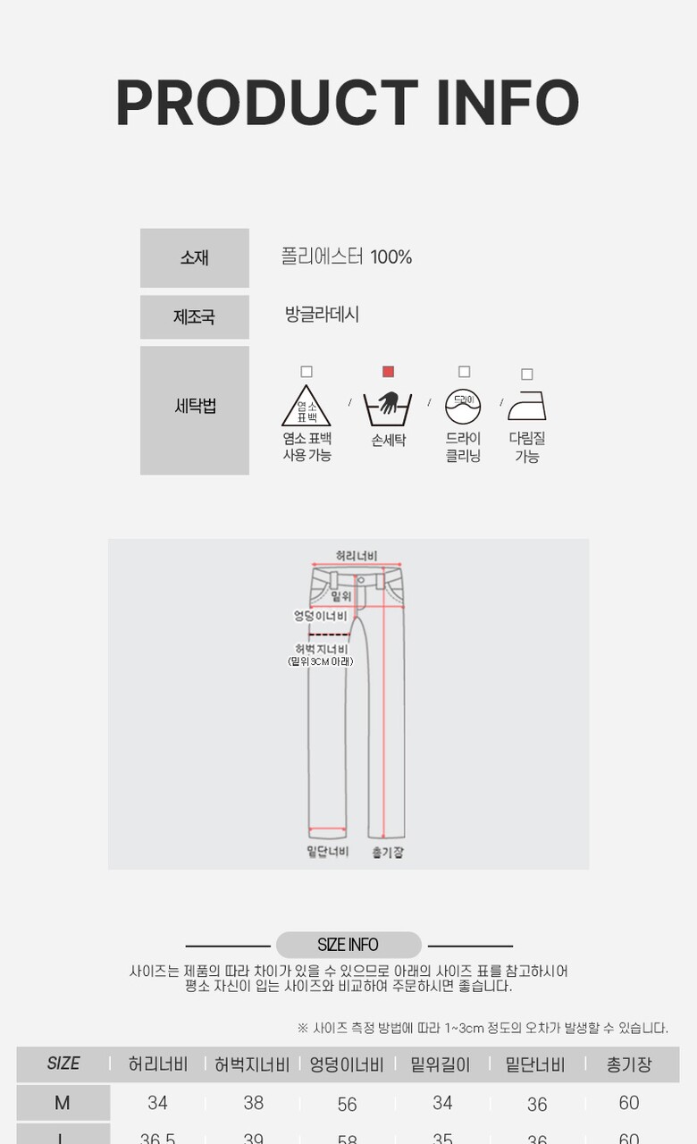 6. 세탁방법 및 취급시 주의사항 | 단독손세탁,다림질가능 |
