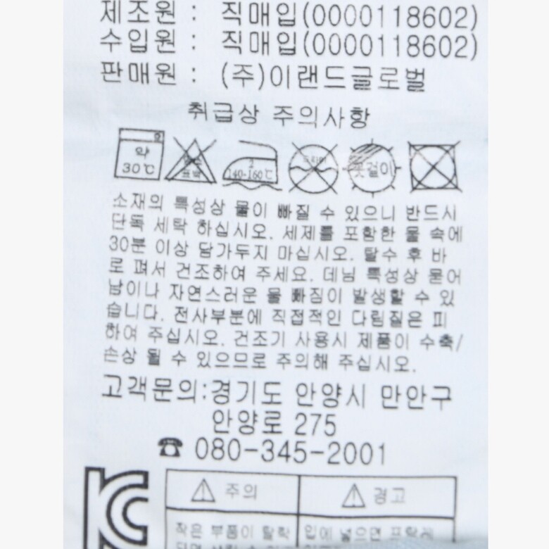 | 6. 세탁방법 및 취급시 주의사항 | 상품상세참조 |