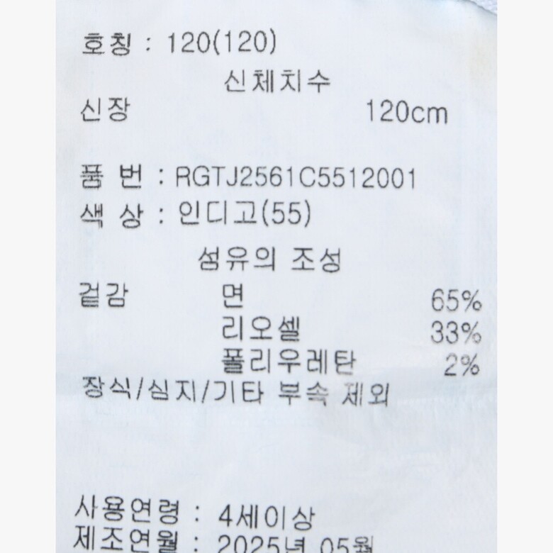 | 1. 제품 소재 (섬유의 조성 또는 혼용률을 백분율로 표시, 기능성인 경우 성적서 또는 허가서) | 상품상세참조 |