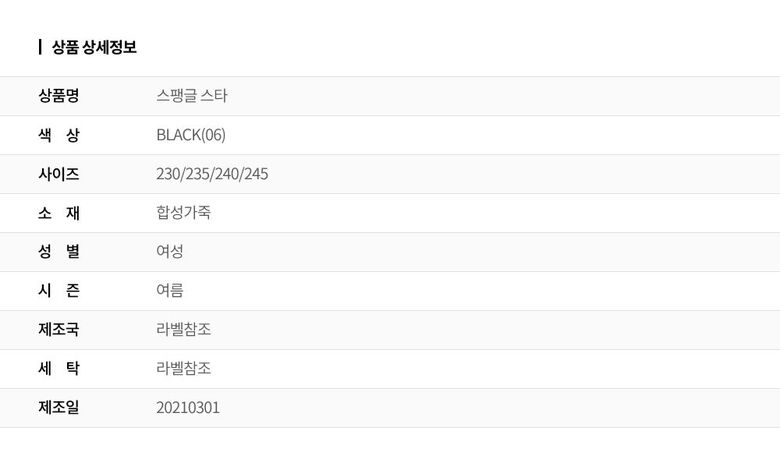 1. 제품 소재 (운동화인 경우에는 겉감, 안감을 구분하여 표시) 합성가죽