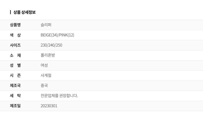 | 2. 색상 | 색상:BEIGE(34)/PINK(12) |