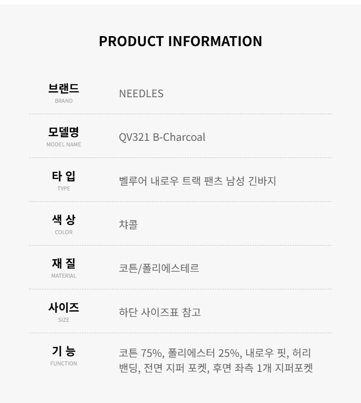 | 1. 제품 소재 (섬유의 조성 또는 혼용률을 백분율로 표시, 기능성인 경우 성적서 또는 허가서) | 상세페이지 참조 |
