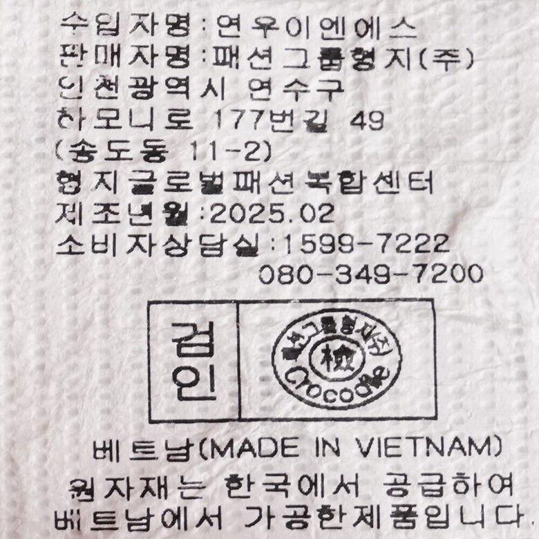 | 1. 제품 소재 (섬유의 조성 또는 혼용률을 백분율로 표시, 기능성인 경우 성적서 또는 허가서) | 상품상세참조 |
