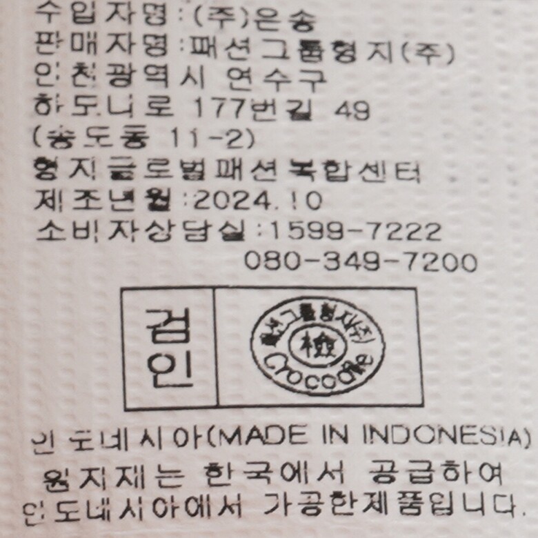 | 1. 제품 소재 (섬유의 조성 또는 혼용률을 백분율로 표시, 기능성인 경우 성적서 또는 허가서) | 상품상세참조 |