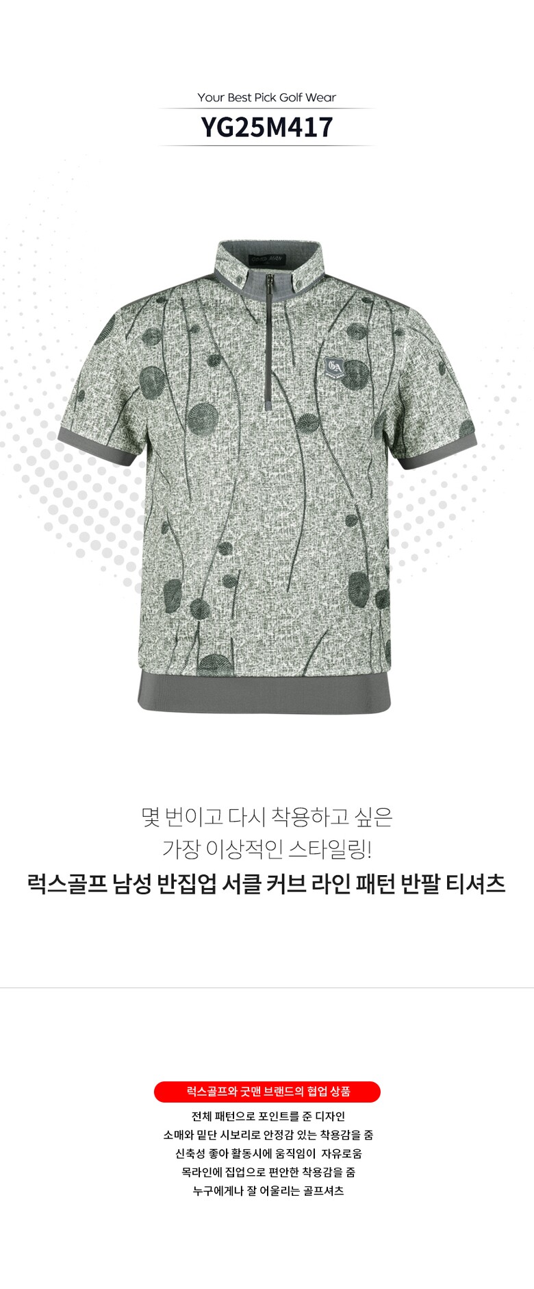 럭스골프 남성 반집업 서클 커브 라인 패턴 반팔 티셔츠 YG25M417