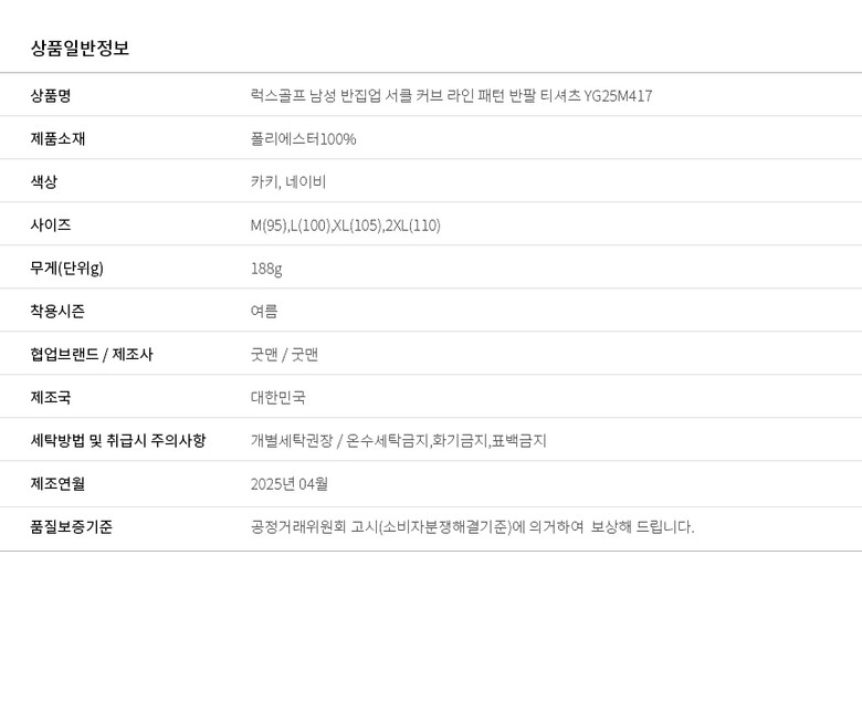 | 3. 치수 | M(95),L(100),XL(105),2XL(110) |
