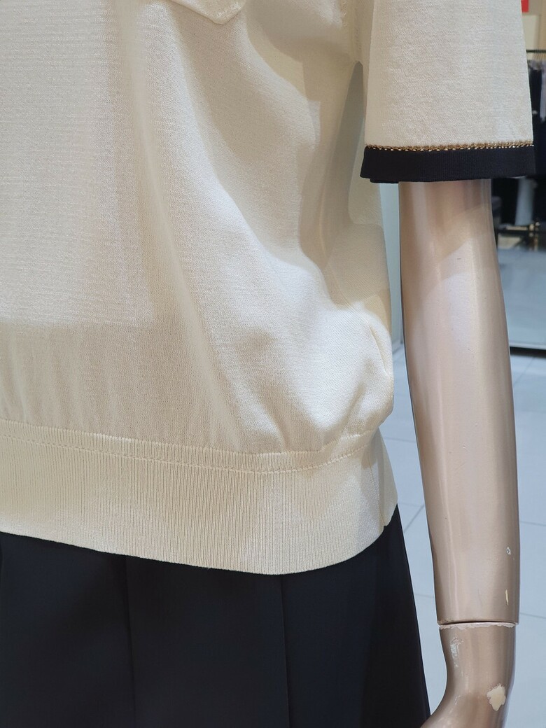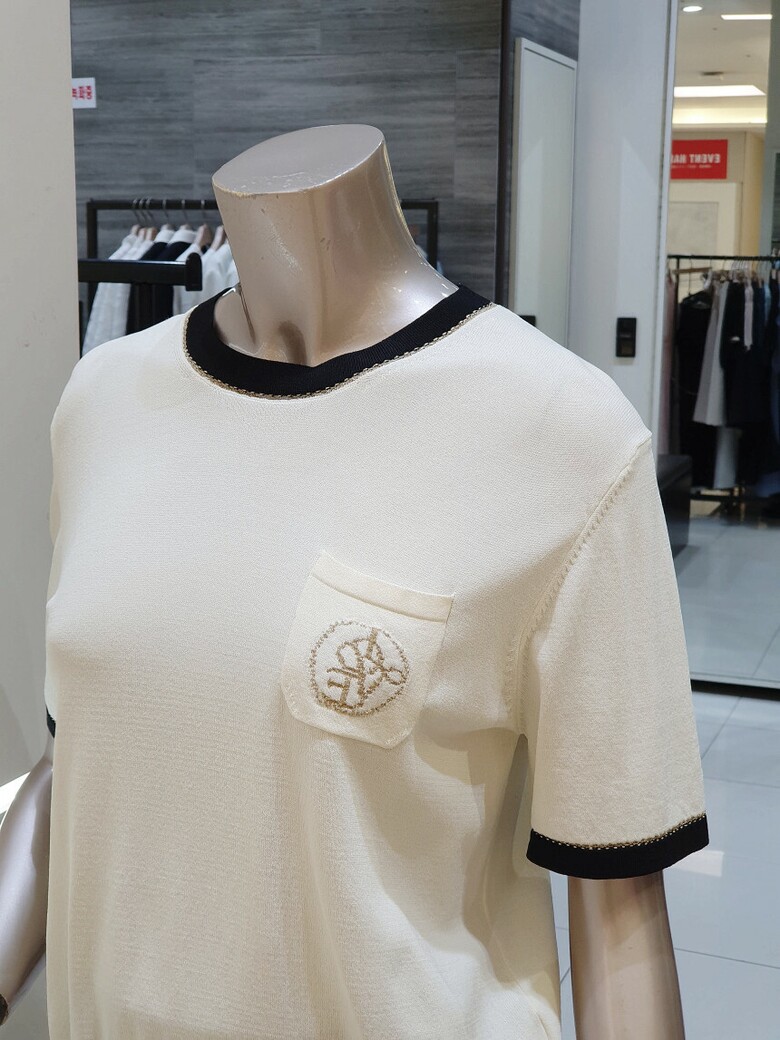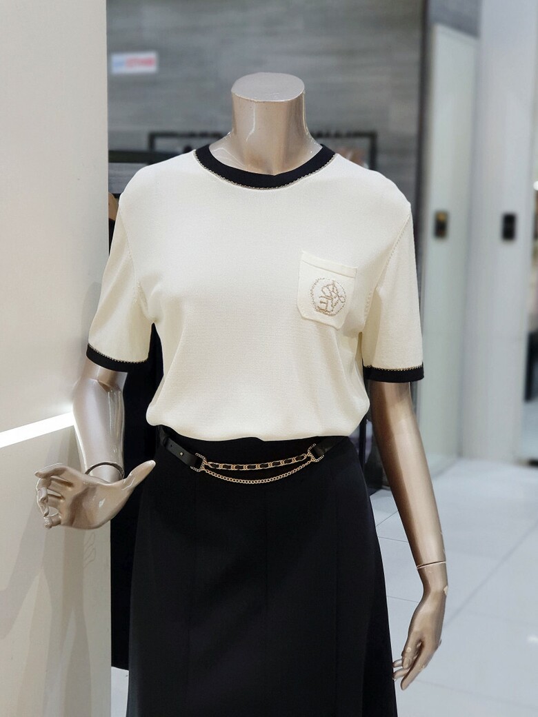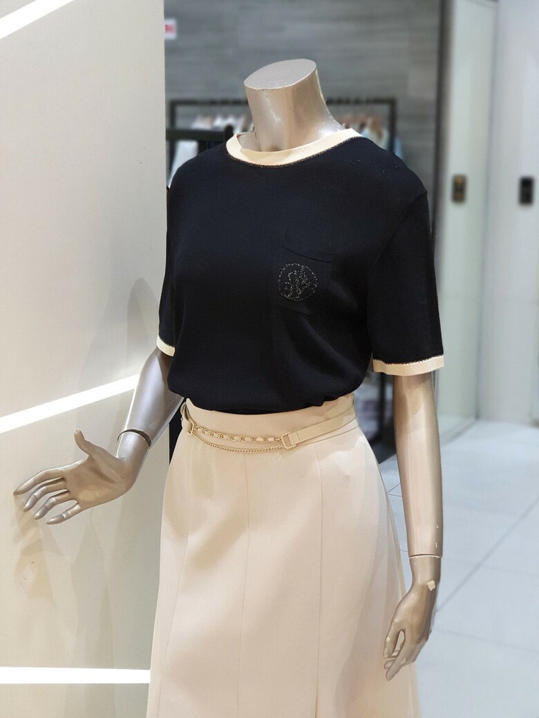 포켓 메탈 자수 배색 풀오버 니트 MYBAKU5400