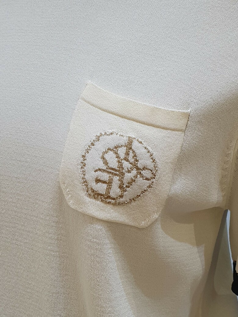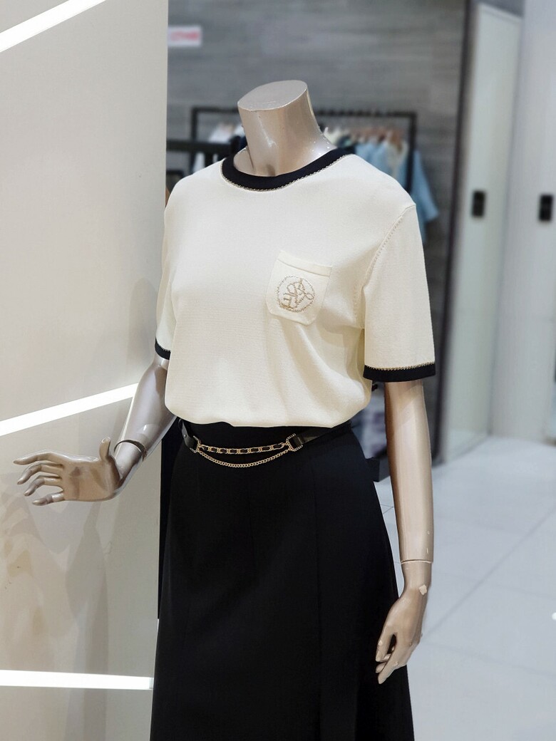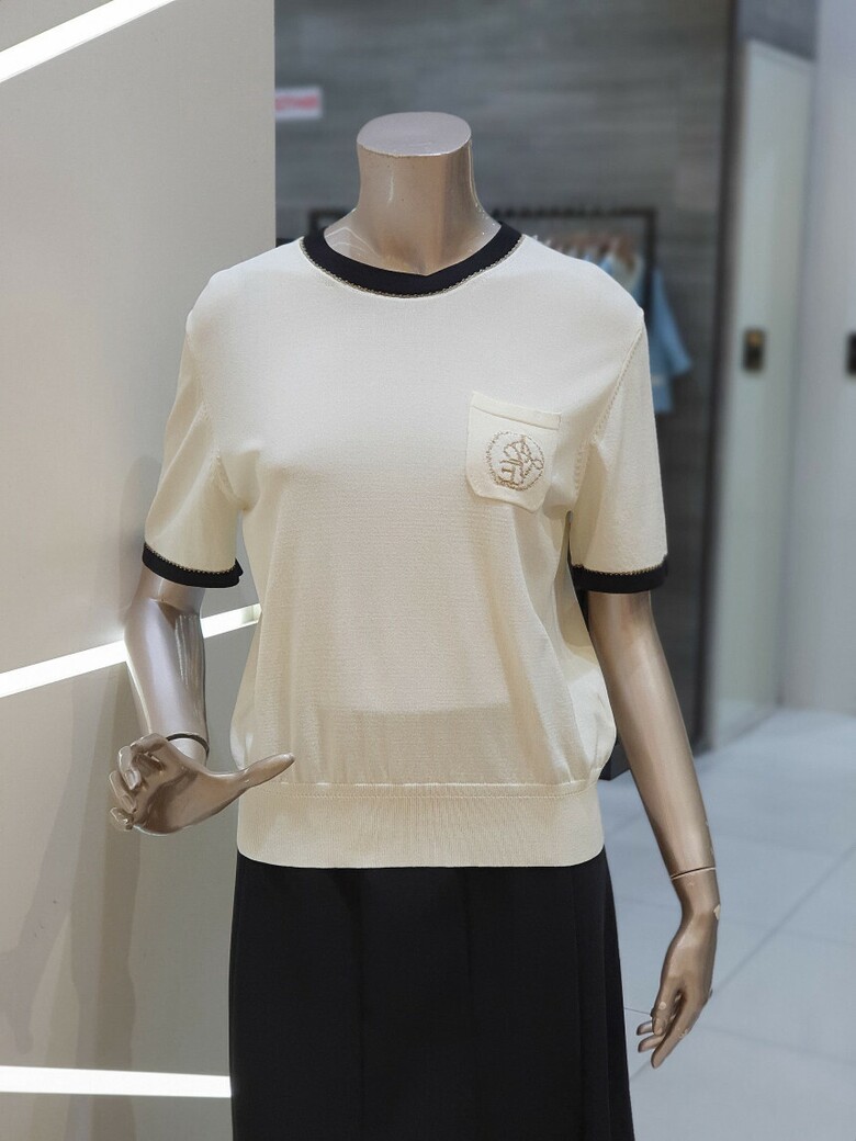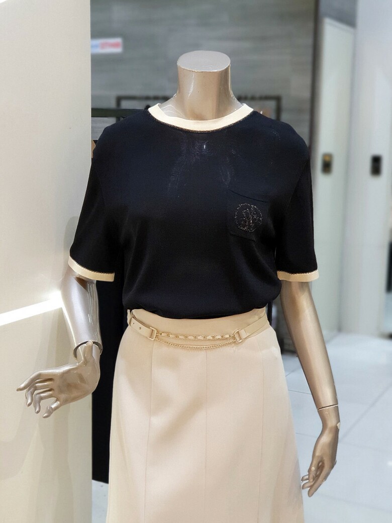 포켓 메탈 자수 배색 풀오버 니트 MYBAKU5400