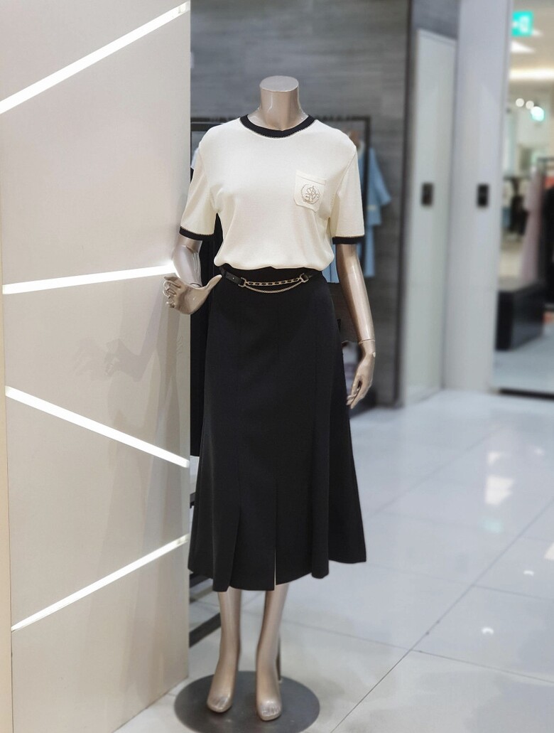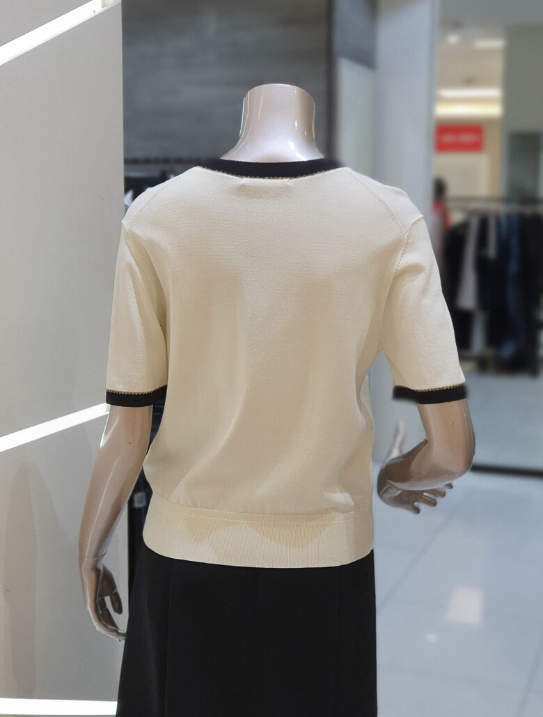 라인 배색이 돋보이는 풀오버 니트입니다.