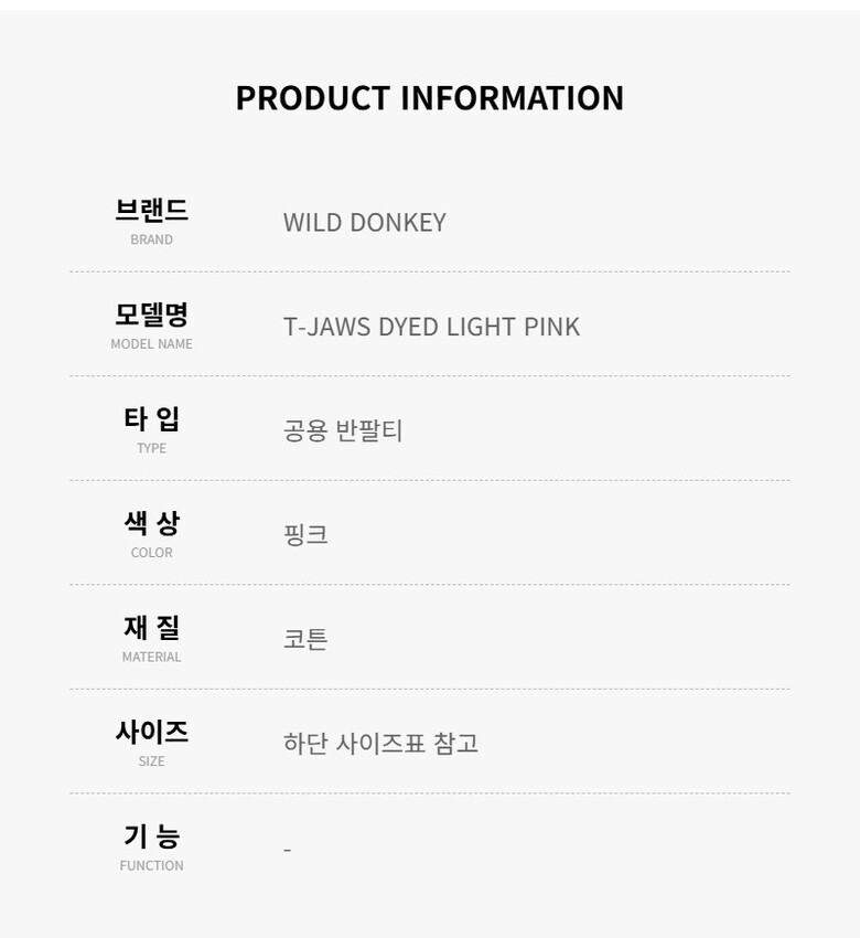 와일드동키 반팔 T-JAWS DYED LIGHT PINK 그래픽 프린팅 남성반팔티 여성반팔티 당일발송