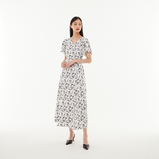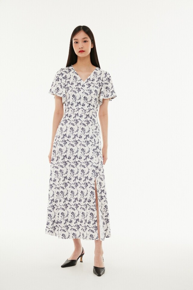 AP2WO558 꽃 패턴 랩 브이 원피스