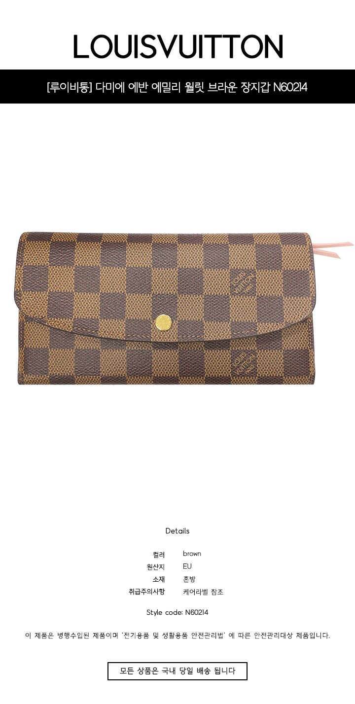 [명품] 다미에 에반 에밀리 월릿 브라운 장지갑 N60214 /