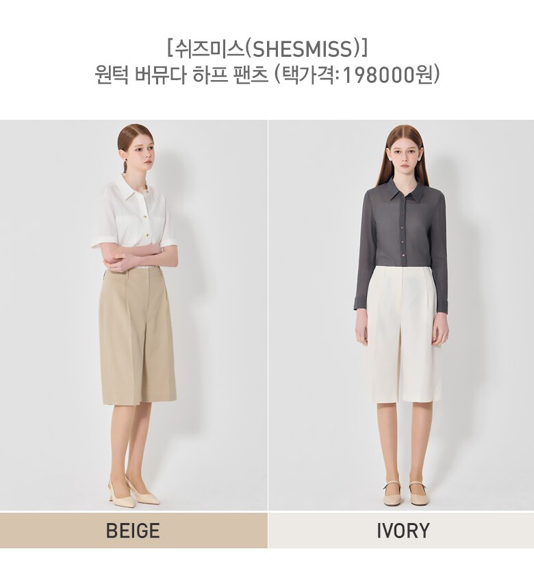 [쉬즈미스(SHESMISS)] 품격있는 원턱 버뮤다 하프 팬츠 (택가격: 198000원)