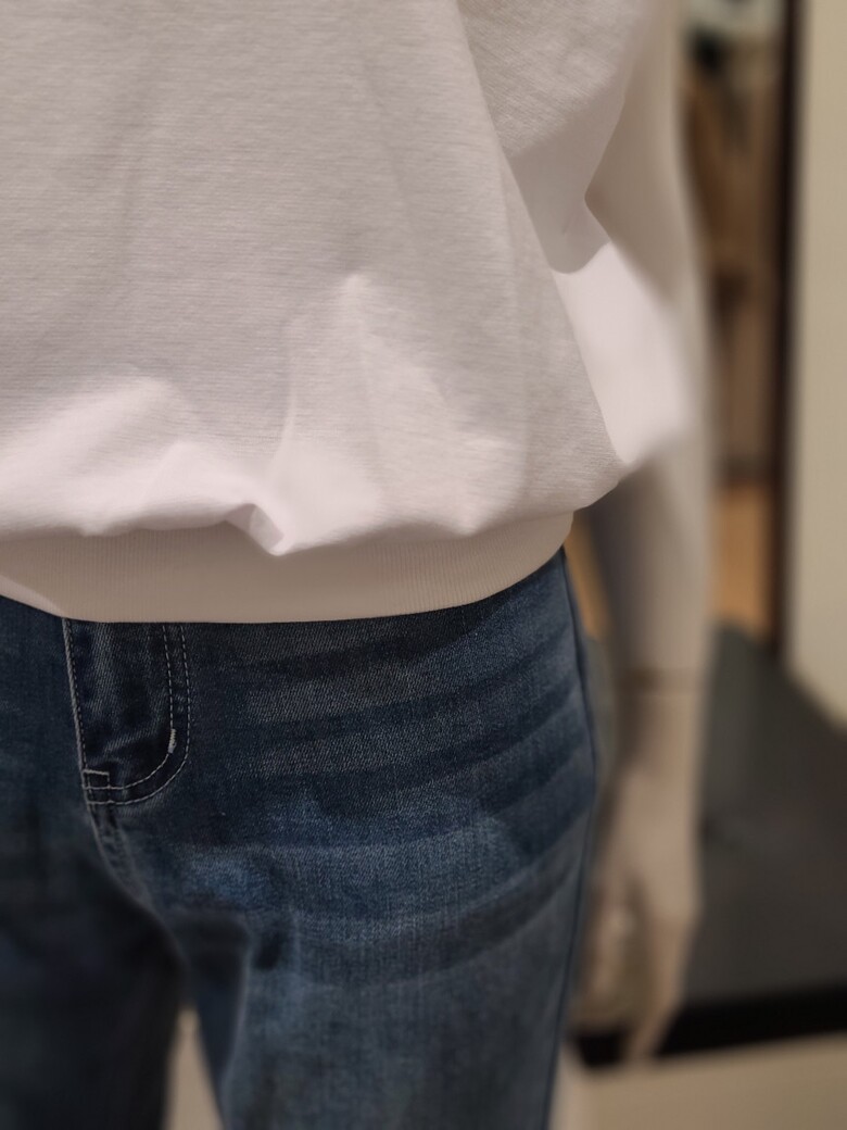 | 1. 제품 소재 (섬유의 조성 또는 혼용률을 백분율로 표시, 기능성인 경우 성적서 또는 허가서) | 겉감:면 50%, 폴리에스테르 45%, 스판 5% / 배색:면 95%, 스판 5% |