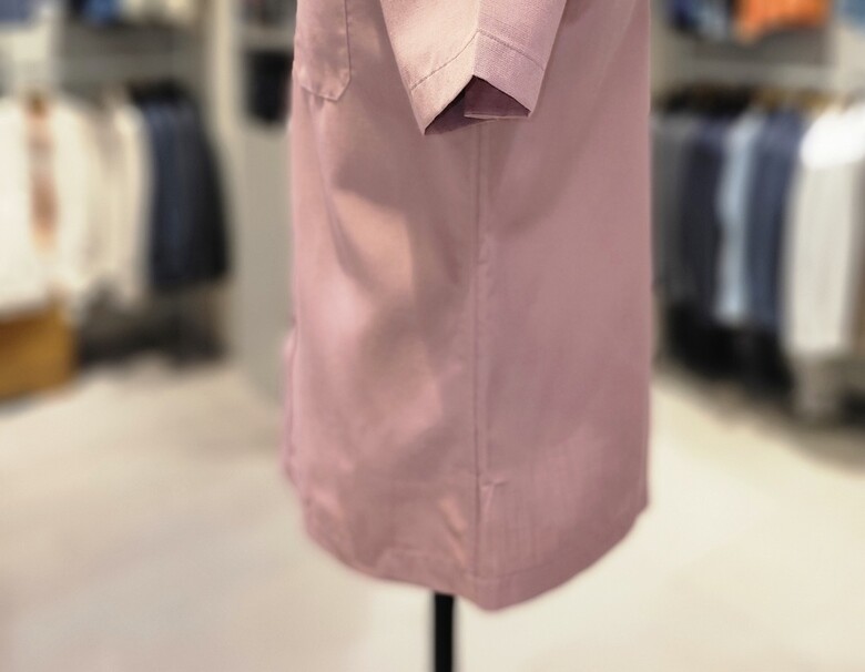 왼쪽 가슴에 포켓이 제작 되었으며 밑단은 일자 입니다.