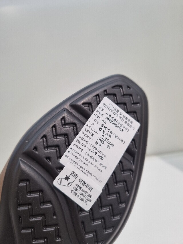 1. 제품 소재 (운동화인 경우에는 겉감, 안감을 구분하여 표시) 양가죽