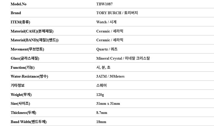 | 7-2. 시계 - 기능, 방수 등 | 상세페이지 참조 |