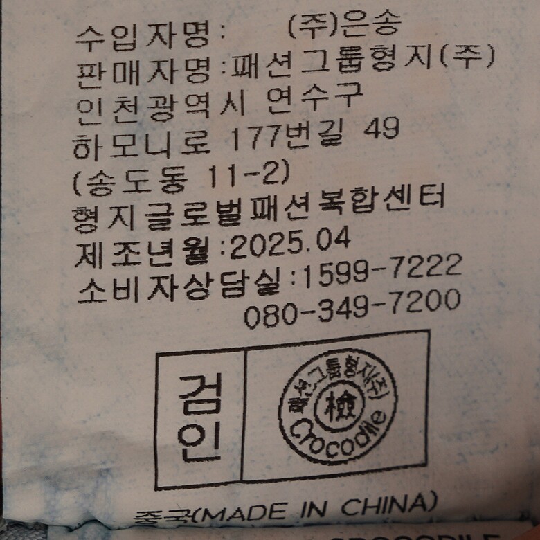 | 1. 제품 소재 (섬유의 조성 또는 혼용률을 백분율로 표시, 기능성인 경우 성적서 또는 허가서) | 상품상세참조 |