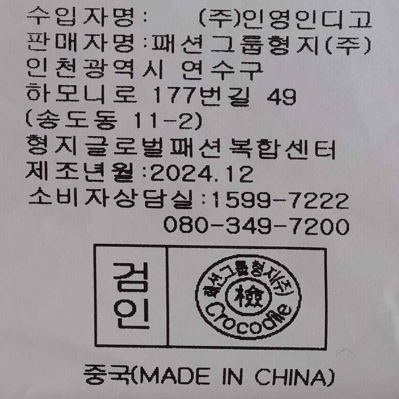 | 1. 제품 소재 (섬유의 조성 또는 혼용률을 백분율로 표시, 기능성인 경우 성적서 또는 허가서) | 상품상세참조 |