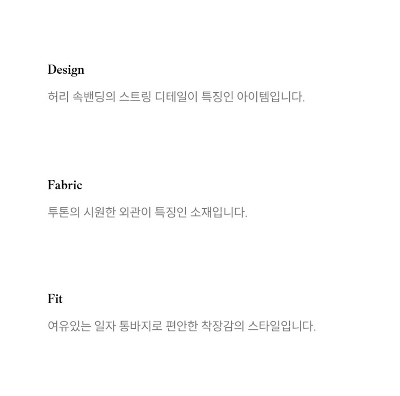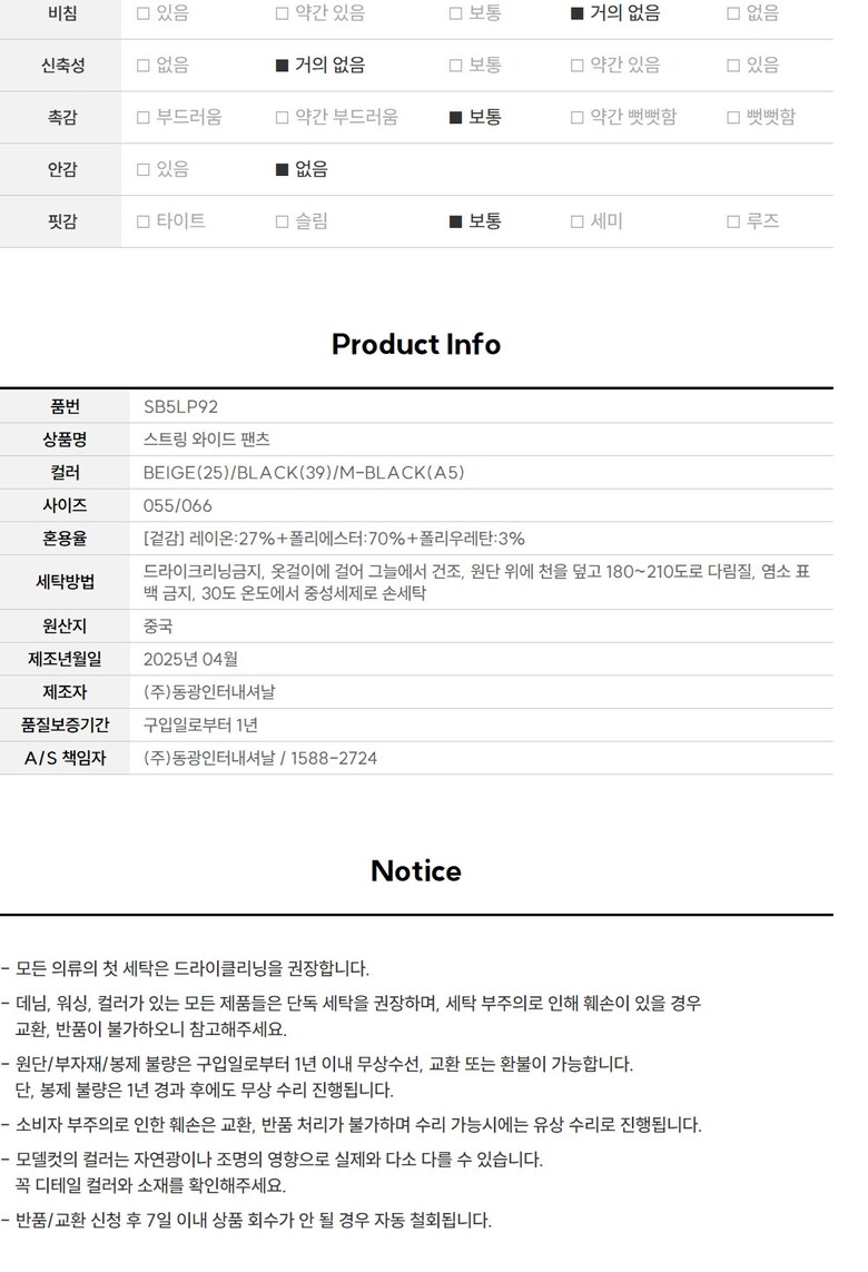1. 제품 소재 (섬유의 조성 또는 혼용률을 백분율로 표시, 기능성인 경우 성적서 또는 허가서) | 상품상세참조 |