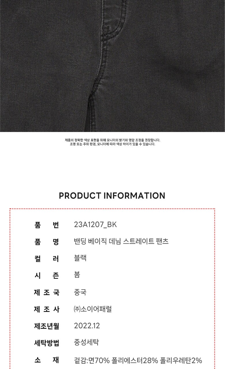 남아 밴딩 베이직 데님 스트레이트 팬츠 23A1207_BK
