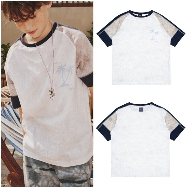 AZC3TS01WT_나염프린팅 컬러블럭 화이트 반팔티셔츠