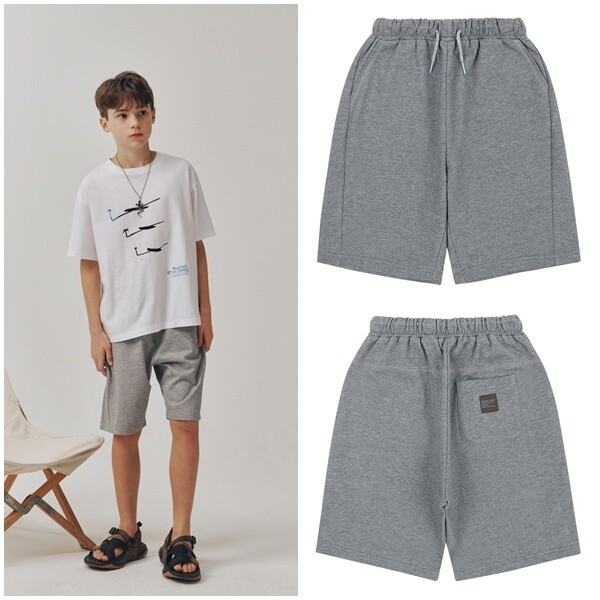 AZB7PT02MG_멜란지 그레이 버뮤다 져지 팬츠