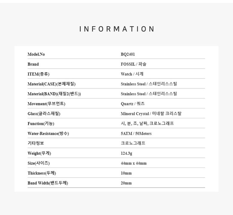 | 1. 소재 / 순도 / 밴드재질 | 블랙/ 케이스 - 스테인리스스틸 / 밴드 - 스테인리스스틸 |