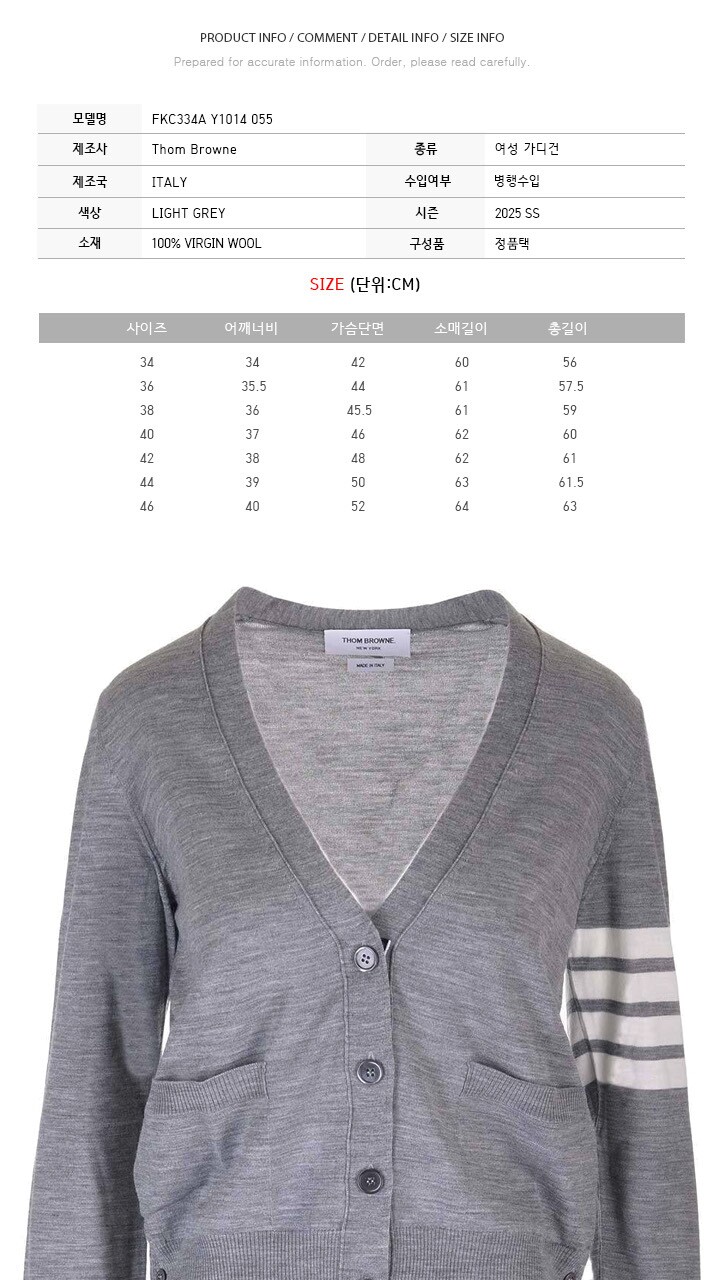 톰브라운 25FW 사선 브이넥 울 가디건 라이트그레이 FKC334A Y1014 055