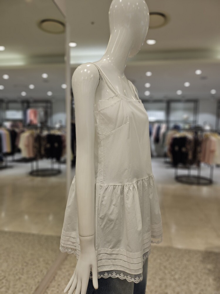 레이스 배색 어깨끈 블라우스