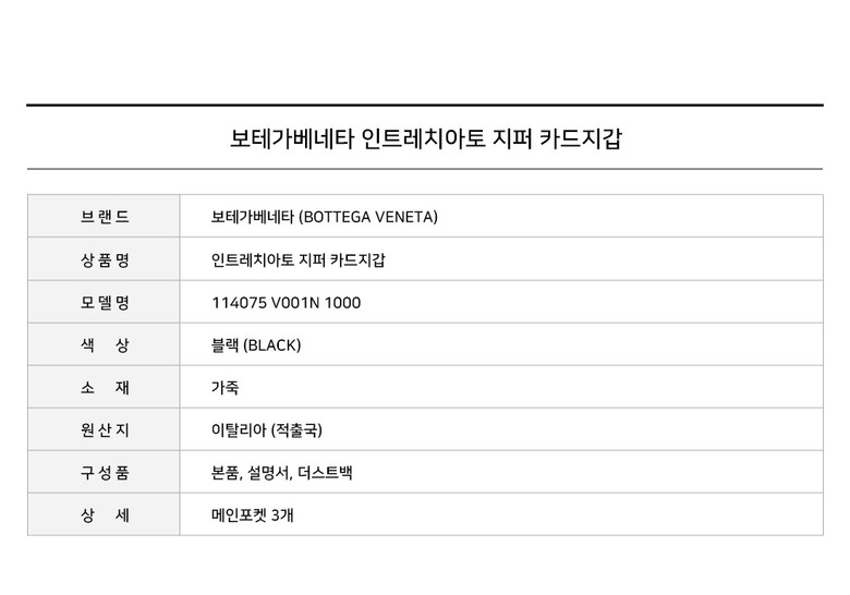 - #리본즈코리아 #114075V001N1000 #[명품] #보테가베네타 #인트레치아토 #지퍼 #카드지갑 #블랙 #114075 #V001N #1000 #남성 #지갑 #카드/명함지갑 #카드지갑홀더