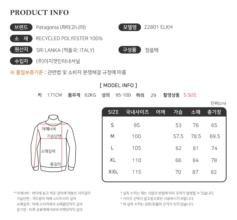 | 1. 제품 소재 (섬유의 조성 또는 혼용률을 백분율로 표시, 기능성인 경우 성적서 또는 허가서) | 상세페이지 참조 |